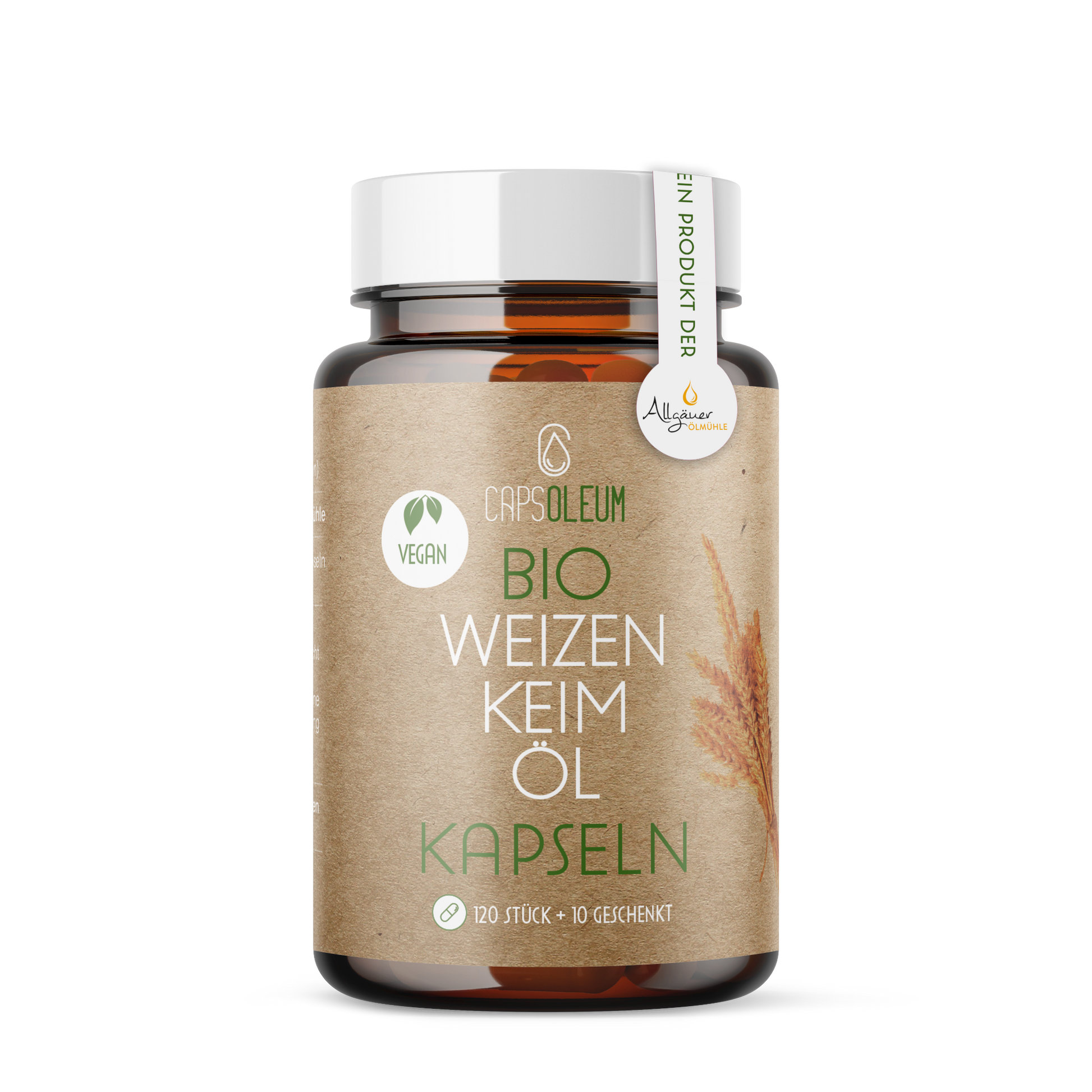 Empfohlene Tagesdosis: maximal 3000mg Bio Weizenkeimöl (6 Kapseln)